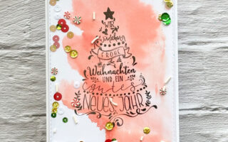 Den Text habe ich mit der Carlijn Design „Outline Alfabet“ Cutting Dies ausgestanzt und die Schüttlekarte mit passenden Pailletten aufgefüllt.