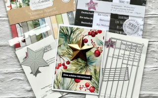 Der kleine Rahmen und die Ticketnummer sind aus dem Stempelset Ticket für Dich, sowie der Spruch Zauberhafte Weihnachten,dass ich mit VersaMark gestempelt habe und weiss embossed.