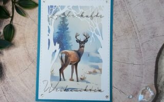 Die Vorderseite ist zu einem mit Designpapier aus meinem Bestand dekoriert und zum anderen mit dem Designpapier „Zauberwald“, welches ich mit der Stanze „“Aufleger A6 mit Fenster“ ausgestanzt habe. Der Stempel der die Vorderseite ziert, ist aus dem Stempelset „Adventskalender für Dich“.