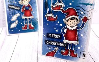 Heute habe ich für euch eine ATC Weihnachtskarte in rot, grün, rosa mit unseren niedlichen Weihnachtselfen Jonte der Weihnachtself!