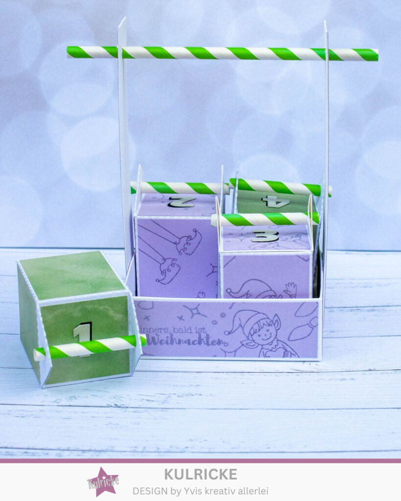 Diesmal möchte ich euch wieder eine kreative Box vorstellen. Mit der tollen Stanzschablone „Strohhalm-Box“ von Kulricke könnt ihr ganz einfach einen wunderschönen Adventskalender basteln.