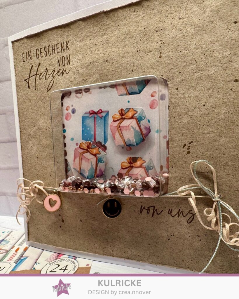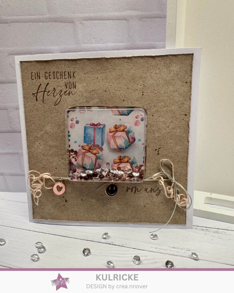 Verpackungen sind nicht immer Abfall… ich habe aus den Resten einer Blisterverpackung diese super schöne Schüttelkarte gebastelt.