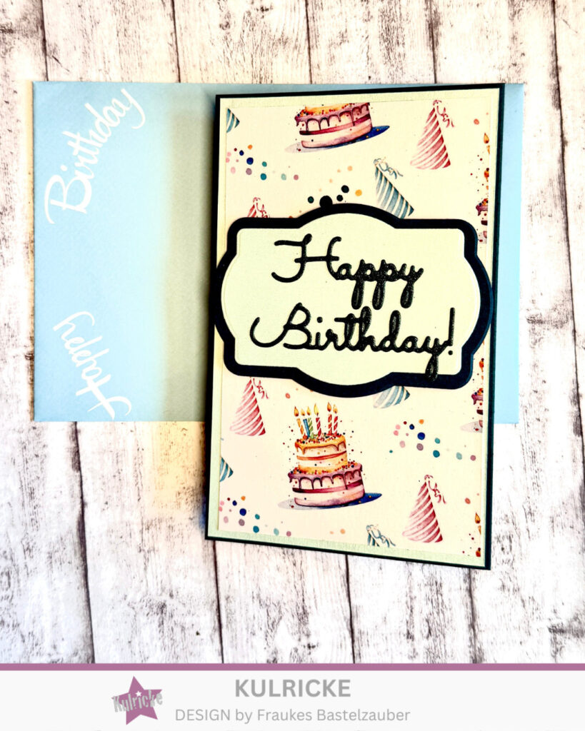 Außen sind in den gleichen Farben die „Schilder“ aufgeklebt worden und darauf noch das „Happy Birthday“.