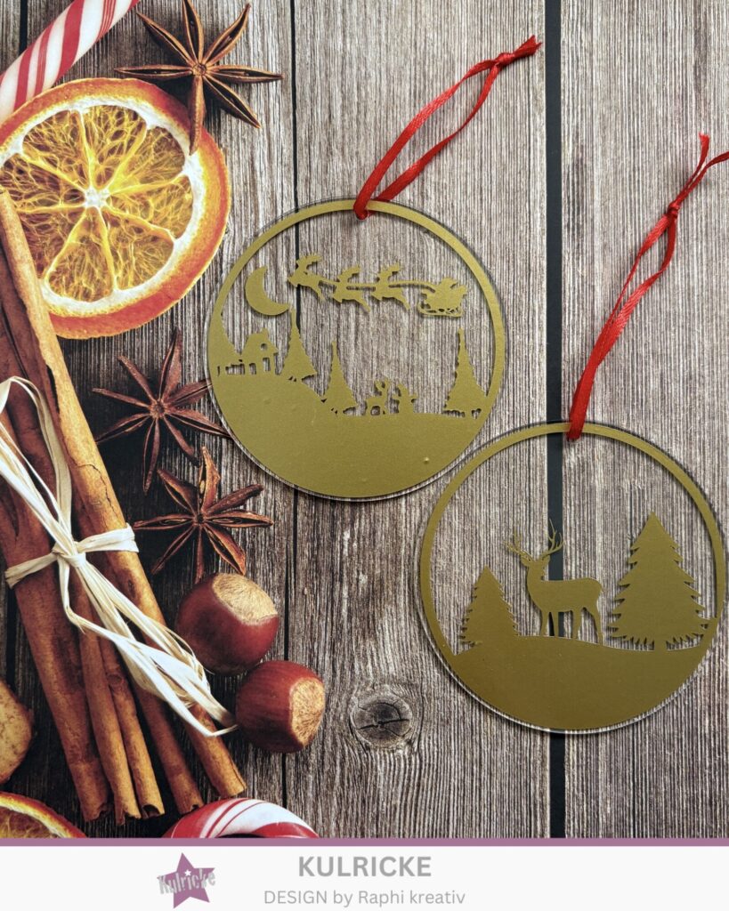 Eine weitere Idee ist das Ausstanzen von Vinylfolie. Diese habe ich auf Acrylscheiben aufgeklebt. Ich habe mich hier für Gold entschieden.