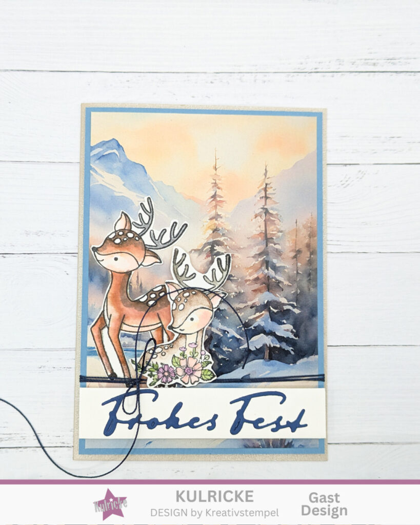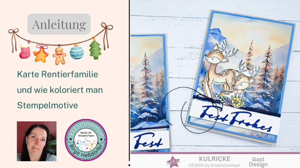 Eine Weihnachtskarte mit der niedlichen Rentierfamilie ist heute meine Wahl und ich möchte euch zeigen, wie einfach man Stempelmotive kolorieren kann.