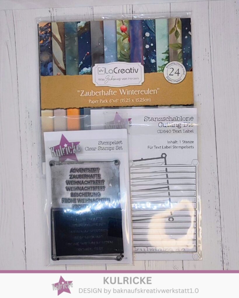 Text Label aufstempeln und dann mit der passenden Stanze ausstanzen, der Spruch wird dann nur noch auf die Karte geklebt. Dazu noch ein paar Glitzersteine und eure Eulenkarte ist fertig. Innen habe ich noch einen weißen Cardstock aufgeklebt, damit man das geschriebene etwas besser lesen kann.