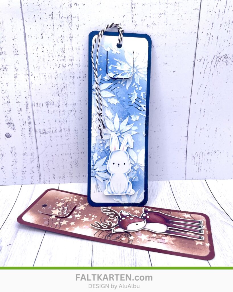 Niedliche Lesezeichen mit Schneehäschen