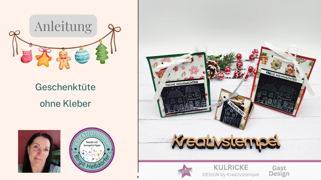 Deshalb habe ich noch eine Idee für euch mitgebracht. Eine Geschenktüte, die völlig ohne Kleber auskommt, die man wunderbar auf Vorrat werkeln kann und sie in verschiedenen Größen schnell basteln kann.