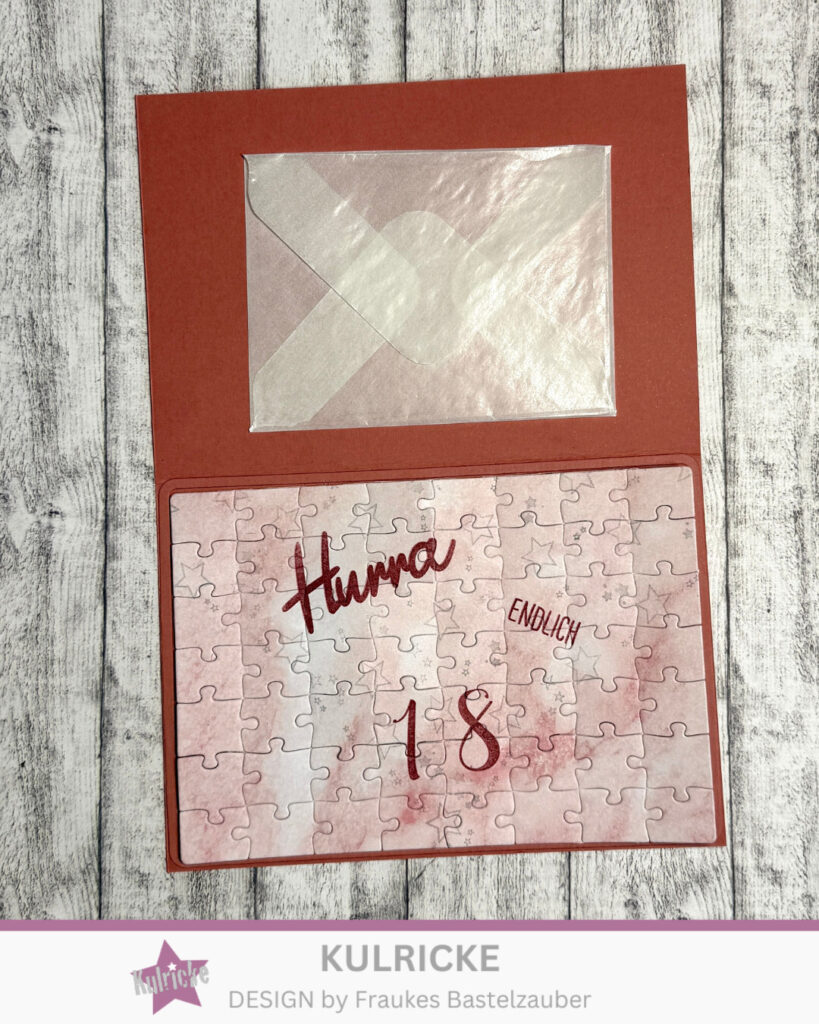 Innen sind die Geburtstagsgrüße mit der Stanze „Puzzle Aufleger“ in ein Puzzle verwandelt. Da hat das Geburtstagskind erst etwas zu tun.