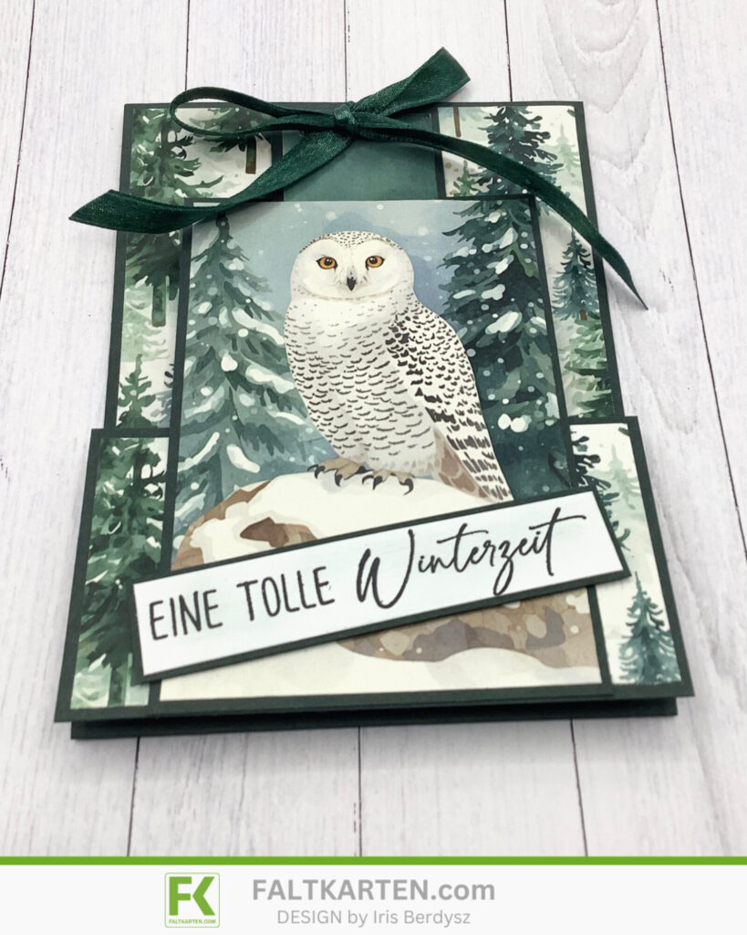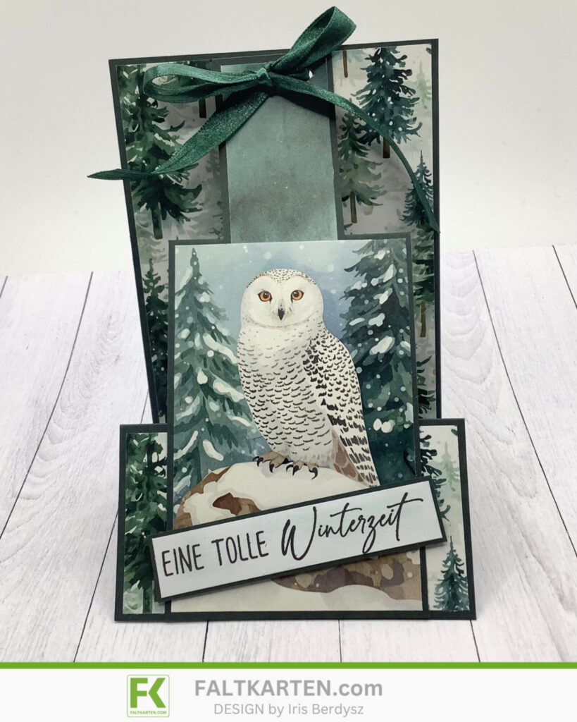 Hallo und ein frohes neues Jahr in die Runde (darf man, glaube ich, noch sagen). Heute habe ich dir wieder eine einfache Technikkarte mitgebracht, eine Treppenkarte mit den tollen DSPs Zauberhafte Wintereulen und Verschneiter Tannenwald.