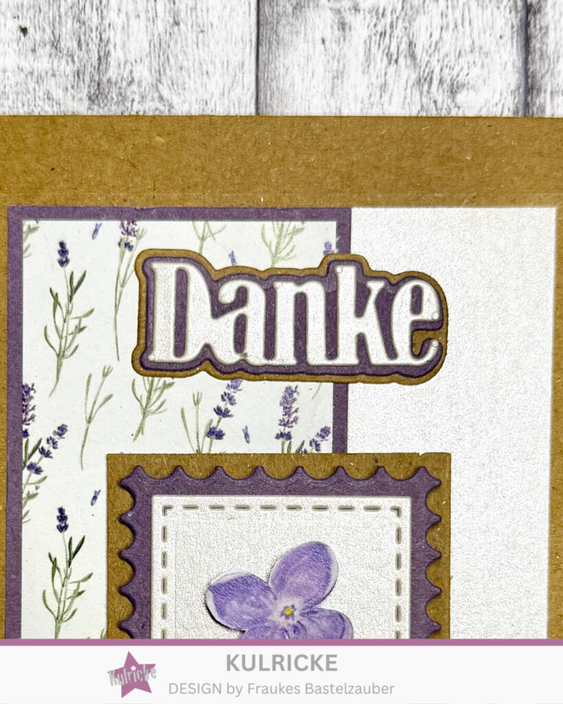 Für diese Karte habe ich das Designpapier „Lavendelglück“, das Cardstock „Recycling Kraft Purple“, Cardstock „Recycling Natur“ und das Cardstock „Metallic Ivory“ mir ausgesucht.