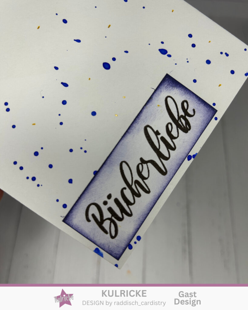 Aus dem Stempelset „Bücherliebe“ habe ich mir den Text Bücherliebe herausgesucht und den schönen Bücherhaufen mit der Tasse. Als Stempelfarbe habe ich passend zum braunen Kraftpapier ein Braun verwendet.