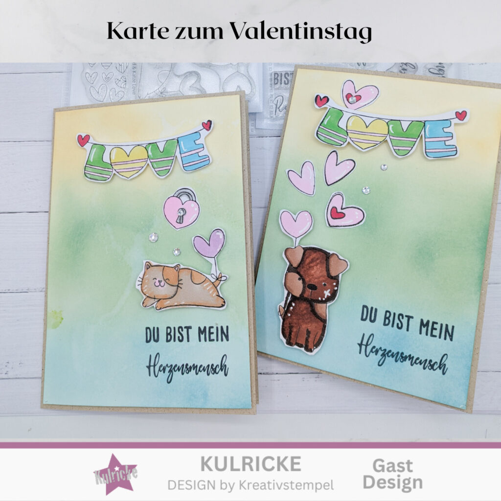 Heute habe ich euch eine Idee zum Valentinstag für eure Herzensmenschen mitgebracht. Mit dem Stempelset Hund & Katze Love kein Problem. ich liebe dieses Set.