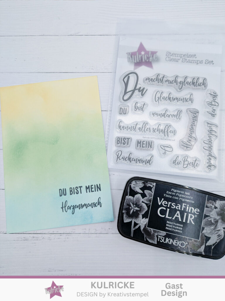 Anschließend könnt ihr einen passenden Spruch stempeln. Ich fand das Stempelset Du bist wundervoll passend.
