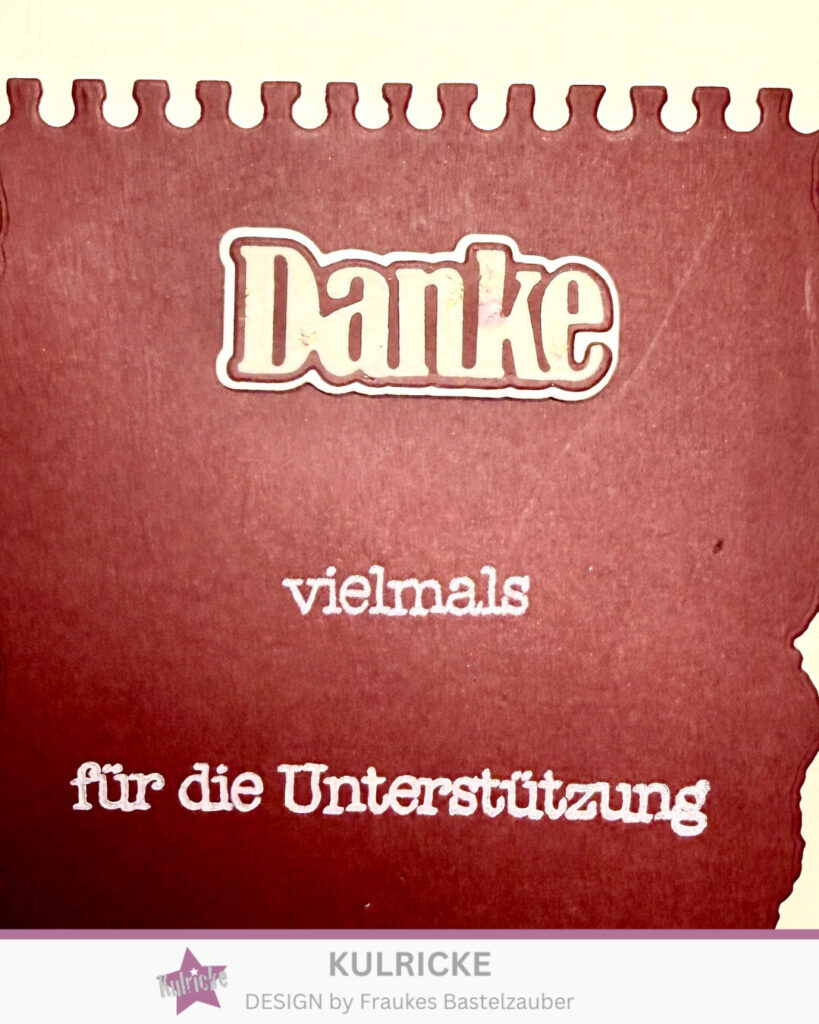 Den Umschlag habe ich mit dem Aufleger „Notizblätter“ beklebt und mit den Worten aus dem Stempelset „Einfach Danke“ und der passenden Stanze „Danke Layout“ dekoriert.
