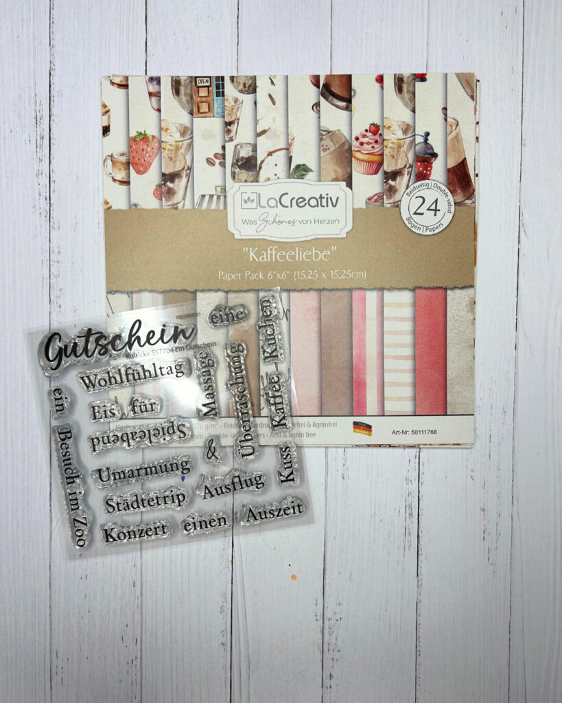 Heute zeige ich euch eine kleine und besondere Geschenkidee: einen selbstgemachten Gutschein für ein gemeinsames Kaffeetrinken, verpackt in einer kleinen Papierbox mit süßer Überraschung.
