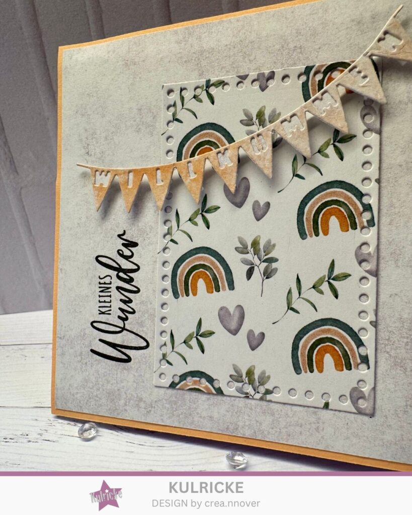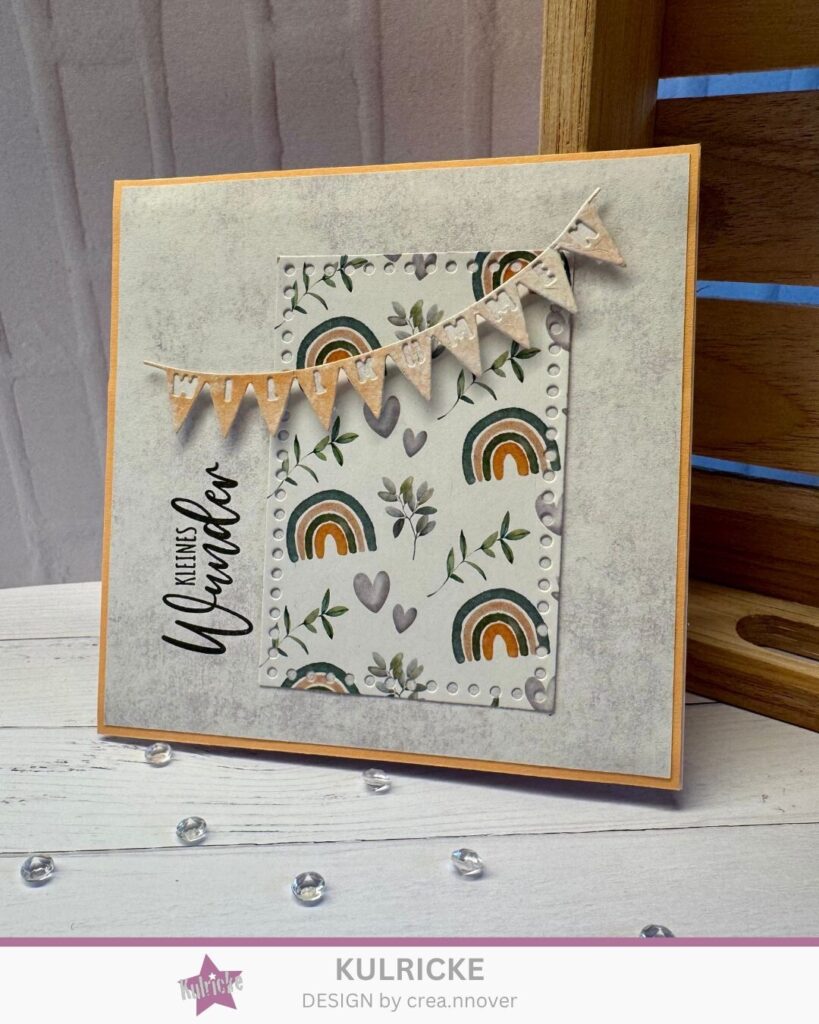 - ✂️ Stanzschablone „Willkommen Fähnchen“ – ebenfalls ideal für Karten zur Geburt.