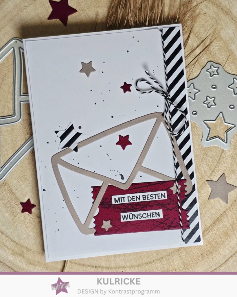 Für den Aufleger habe ich die Stanze Brief mit Herz, die Stanze Sterne Insert und die Stanze Etiketten Streifen verwendet.