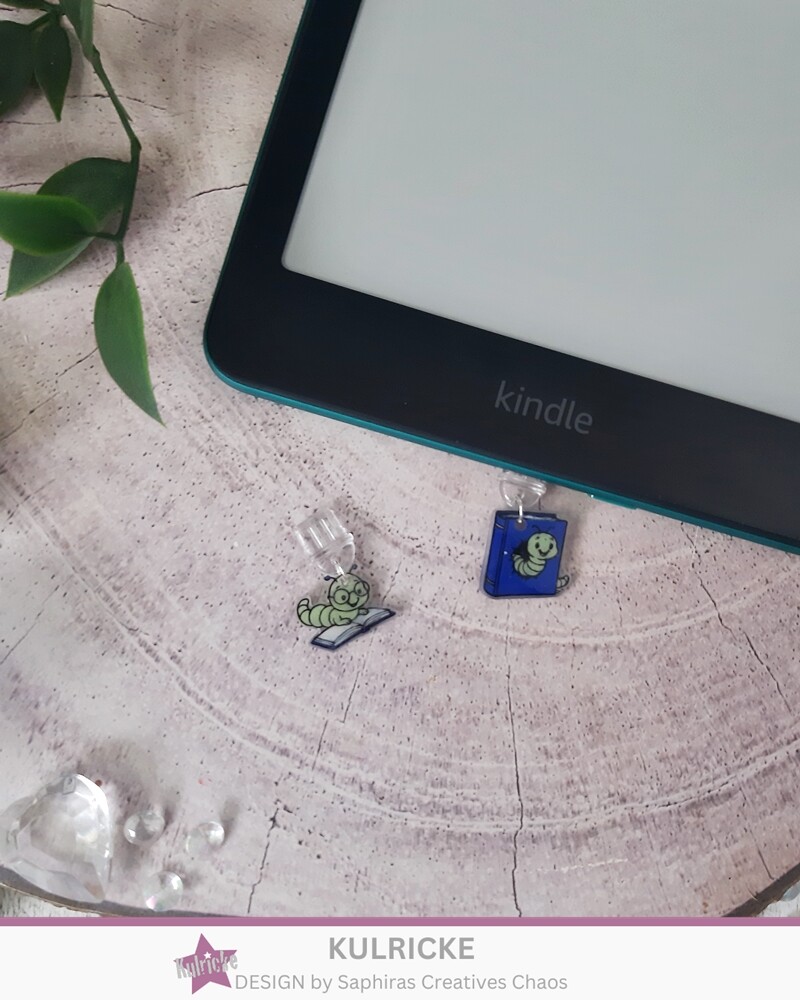 Die niedlichen Bücherraupen dürfen nun die Ladebuchse vom Ebook-Reader vor Staub schützen.