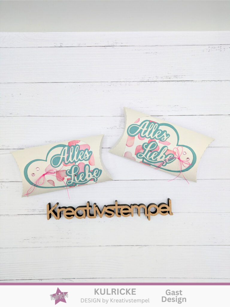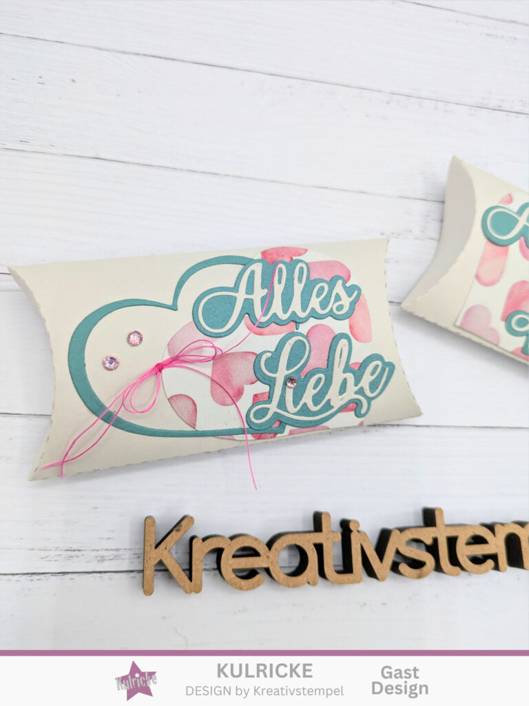 Mit unserer neuen Stanzform Kissenbox CD999 ist da gar kein Problem. In 5 Minuten ist das schöne Geschenk fertig.