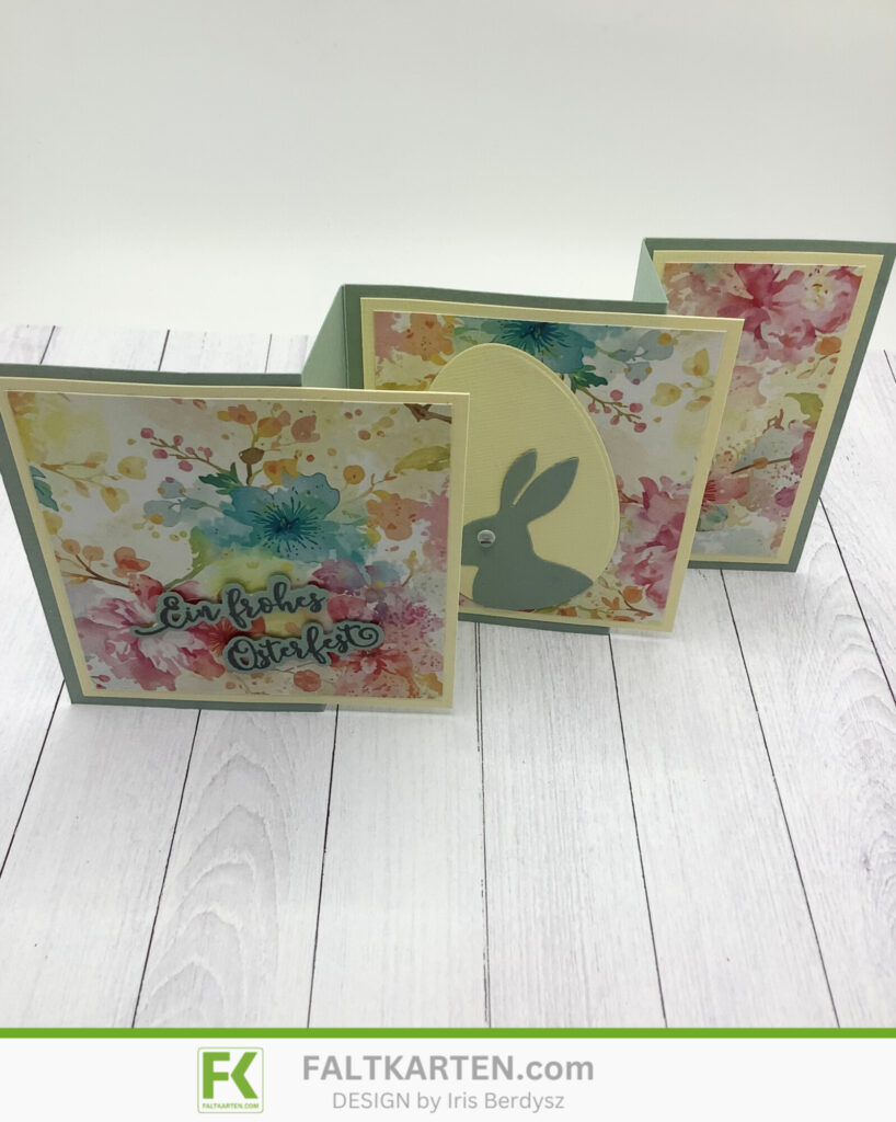 Hallo und guten Morgen, weiter geht es mit den Osterkarten Inspirationen. Heute habe ich dir eine Aufstellkarte im Akkordeon Stil mitgebracht. Ich finde es ja immer schön, wenn die Karten noch eine Zeit lang hingestellt werden können, damit man noch etwas davon hat.