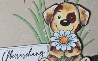 Heute habe ich für euch eine frühlingskarte mit niedlichen Hündchen.