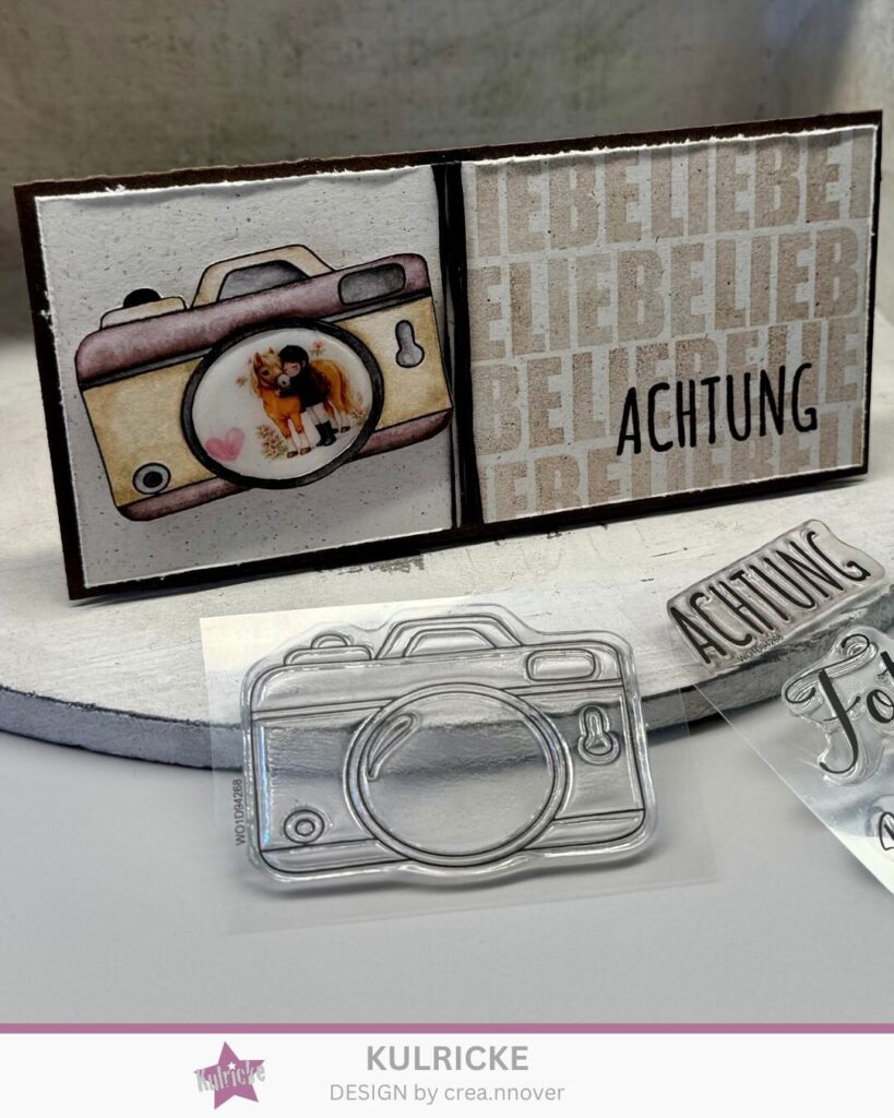 Diese Karte ist schnell gemacht und lässt sich wunderbar variieren. Durch unterschiedliche Motive hinter der Kameralinse kannst du sie für verschiedene Anlässe gestalten – ob Geburtstag, Freundschaft oder einfach als kleine Aufmerksamkeit. Ich wünsche dir viel Freude beim Nachbasteln und beim kreativen Experimentieren! ✨