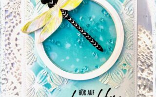 - Alle weiteren Elemente nun als Dekoration mit Foamtape oder direkt auf die Karte aufkleben.