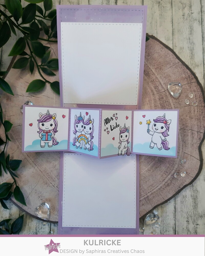 Stempel: „Einhorn-Minis„, „Herzlichen Glückwunsch – Anlässe feiern“ und „Glückslichter„