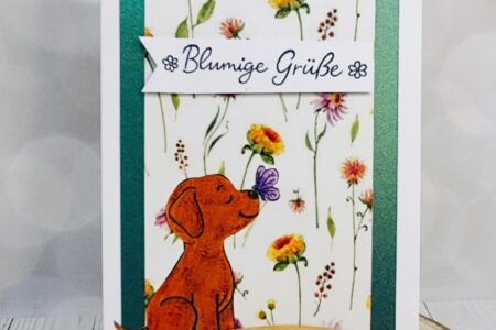Hallo zusammen Heute gibt es noch einmal eine einfache Anfänger Karte. Ihr braucht dazu: Ihr braucht eine Grundkarte 21×14 gefalzt bei 10,5cm. Darauf kommt ein Aufleger aus Cardstock 9×14 cm, darauf der Aufleger aus DSP 7,5×14 cm. Der Hund wird abgestempelt und coloriert. Dann vorsichtig …