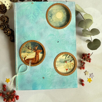 Durch die Öffnungen in der Karte kann man das Reh, das im Mondschein im Winterwald verzaubert wird, schon etwas erkennen.. Materialien: Aus meinem Bestand: Anleitung Vorderseite: Mit den 3 Distress Ink-Blautönen von außen (Rand) nach innen (zur Karte hin) wischen.Den Stencil auflegen und mit Oxice …