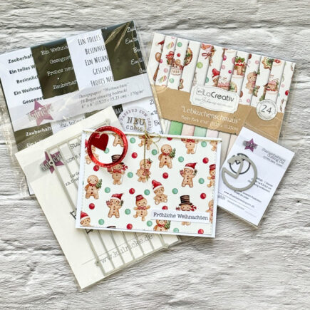 Im Einsatz LaCreativ – Designpapier „Lebkuchenschmaus“ Paper Pack 6×6″ – 24 Bogen Kulricke Designpapier – „Weihnachten“ Paper Pack 6″ 170g/m² Alternativ Bundel Designpapier Weihnachten & Designpapier Stanzen Kulricke Stanzschablone „Kreis Herz Insert“ Craft Die Bestand Aufleger Stanze, Folienkarton, Band Und loos Im Hintergrund seht ihr …