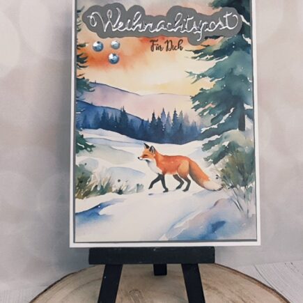 Heute zeige ich euch eine einfache Popup Karte. Zuerst klebt man das Papier auf die Karte und stanzt eine Form aus der Karte raus, die man dann später mit einem Steifen Innen wieder rein klebt. Die Rehfamilie habe ich mit Aquarellfarbe koloriert. Zum Schluss habe …