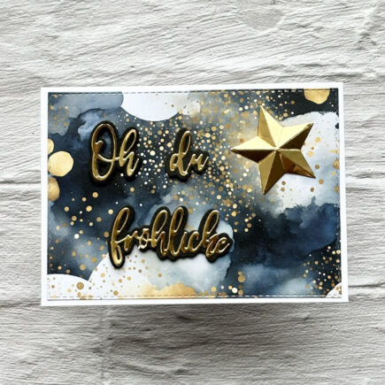 Im Einsatz LaCreativ – Designpapier „Funkelnde Winternächte“ Paper Pack 6×6″ – 24 Bogen Kulricke Stanzschablone „Sterne 3D“ Craft Die Kulricke Metall Stanzschablone Craft Die „Oh du Fröhliche“ Bestand Folienpapier, Moosgummi, Aufleger Stanze Die Karte Im Hintergrund ist das zauberschöne LaCreativ – Designpapier „Funkelnde Winternächte“ zu …