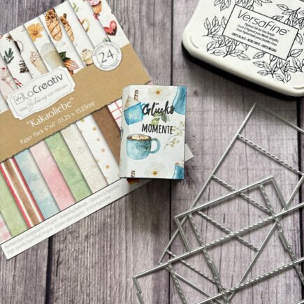 Hallo Ihr Lieben, heute habe ich eine Mitbringsel-Idee für Buch-Fans für euch. Den Grundteil bildet dabei die Mini-Streichholzschachtel. Hierfür habe ich diese aus Cardstock in Nachtblau ausgestanzt. Anschließend habe ich mir aus Cardstock in Nachtblau einen Streifen mit den Maßen 6×10,5cm und mit einem Streifen …