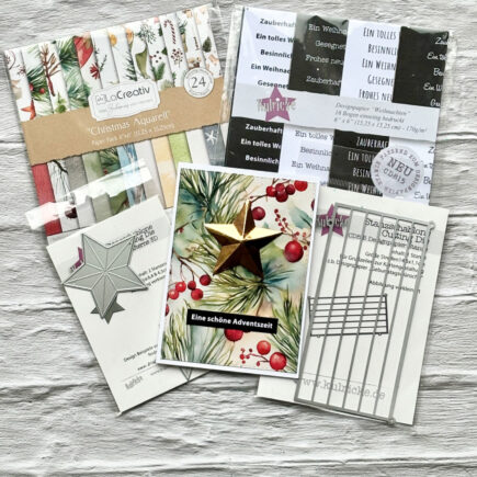In Verwendung LaCreativ – Designpapier „Christmas Aquarell“ Paper Pack 6×6″ – 24 Bogen Kulricke Designpapier – „Weihnachten“ Paper Pack 6″ 170g/m² Alternativ Bundel Designpapier Weihnachten & Designpapier Stanzen Kulricke Stanzschablone „Sterne 3D“ Craft Die Bestand Folienpapier, Aufleger Stanze Und los Für den Hintergrund nutze ich …