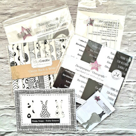 In Verwendung LaCreativ – Designpapier „Ostern Black & White“ Paper Pack 6×6″ – 24 Bogen Kulricke Designpapier – „Ostergrüße“ Paper Pack 6″ 170g/m² – 24 Bogen Alternativ: Bundel Designpapier Ostergrüsse & Designpapier Stanzen Kulricke Stanzschablone „Hasen Mini“ Craft Die Kulricke Stanzschablone „Aufleger Punkte“ Craft Die Die …