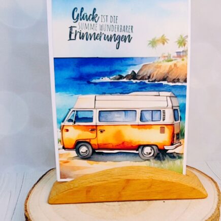 werden leider auch immer wieder benötigt. Diese hier ist für eine Familie, die gerne Zeit am Meer verbringt: Meine Materialien: Aus meinem Bestand: Anleitung: Eine Klappkarte aus Cardstock schwarz, recycling zuschneiden. Je einen Streifen Designpapier und aus Cardstock Struktur -Walnuss schneiden. Das Designpapier habe ich …