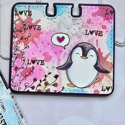 Schön, dass du wieder hier bist! Diese kleinen Tauschkarten machen absolut süchtig. Verwendet habe ich die neue Memorydex Stanze, für einen Rolodex habe ich die Löcher oben gewählt. Den Aufleger habe ich zunächst mit den Distress Spritz eingesprüht. Die Kleckse sind mit dem Stencil ‚Grunge‘ …
