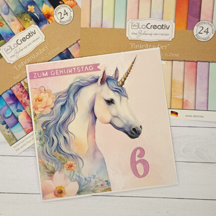 Halli hallo ihr Lieben, ich habe heute das neue Designpapierset Pastelzauber und Einhornzauber her genommen. Es ist ein tolles Set entstanden für eine kleine Dame die 6 Jahre jung wird und riesen Pferdefan ist. Dafür habe ich eine Papiertüte dekoriert. Die Basis dafür ist ein …