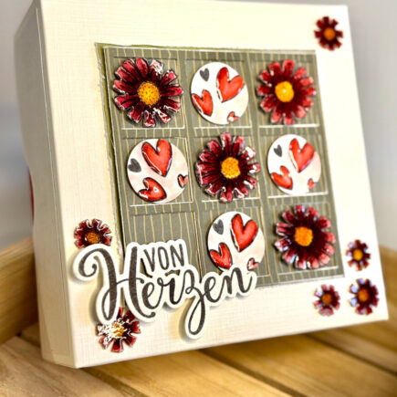 Kennt ihr noch alle Tic Tac Toe? Das hab ich mit den wunderschönen Motiven von Kulricke auf dies Box gezaubert. Ihr braucht dafür: Aus meinem Bestand: Die Box ist 14×14 cm groß und aus stabilen Cardstock gefaltet und geklebt. Auf den Deckel der Box habe …