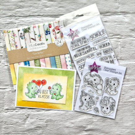 mit super niedlichen Dinos In Verwendung LaCreativ – Designpapier „Teeliebe“ Paper Pack 6×6″ – 24 Bogen Kulricke Stempel „Zum Schulstart“ Clear Stamp Kulricke Stempel „Dino-Minis“ Clear Stamp Ranger – Tim Holtz Distress Oxide Ink Pad – Spiced marmalade Bestand Auflegerstanze, Alkoholmarker Die Karte Aus dem …