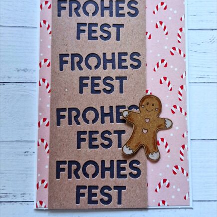 halli hallo heute habe ich eine Karte zum anbeißen für euch ,oder auch nicht 🙈 ist ja nur Papier 🤪 benutzt habe ich heute wieder das kleine Lebkuchenmännchen aus dem Set „Lebkuchenhaus“ coloriert habe ich ganz simpel mit meinen Buntstiften 🙂 im Hintergrund durfte wieder …