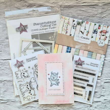 Halli hallo ihr Lieben, und weiter geht es mit den Geburtstagskarten. Heute ist die Karte meiner Tochter dran, die ich euch zeigen möchte. Hierfür habe ich eine Kartenbasis aus einem 12×12 Designpapier von Faltkarten gemacht. Das Papierset heißt „Basic Set“ in grasgrün – da habe …