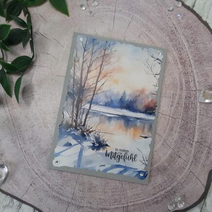 Auch diese Art von Karten gehören leider dazu. Das Papier find ich dafür ganz passend. Verwendet habe ich dafür: Stempel: Aus meinem Fundus, aber das nächste mal wird es dieser „In stillem Gedenken„ Stanzen: „Aufleger A6 Büttenrand“ und „Aufleger A6 mit Fenster„ Designpapier: „Nordische Winterlandschaft„ …