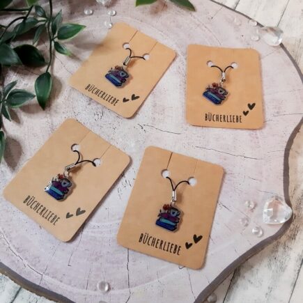 Passend zu den Bücher-Charms von letzte Woche ist auch noch ein Lesezeichen und ein Türhänger entstanden. Verwendet habe ich dafür: Stempel: „Bücherliebe“ und „Psst, ich Träume„ Stanzen: „Lesezeichen„, „Türanhänger“ und „Aufleger XL Box„ Cardstock: „puderweiß“ und „kraft sand„ Zuerst habe ich aus dem Kraft-Cardstock den …