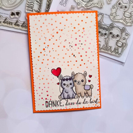 Halli hallo ihr Lieben, Ich hab hier eine Karte für euch, welche ich ein paar ältere Schätze rausgesucht habe. Hierfür habe ich eine Orange Kartenbasis gewählt. Darauf habe ich ein Aquarellpapier geklebt welches ich wie folgt bearbeitet habe: Die Ranzstanze ist die Wellenrand A6, darauf …