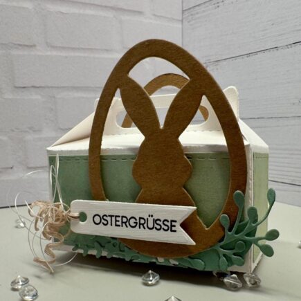 Eine schnelle, liebevoll gestaltete Goodiebox im Osterlook – perfekt für kleine Süßigkeiten oder kleine Osterüberraschungen. Mit passenden Stempeln, Stanzen und Cardstock wird diese Box zu einem fröhlichen Highlight auf jedem Ostertisch. Materialien & Werkzeuge Aus meinem Bestand Anleitung Schritt für Schritt Schritt 1: Box zuschneiden …