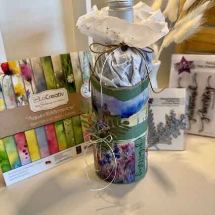 Heute habe ich eine besondere Flaschenverpackung aus Cardstock und Graupappe für euch. Dafür braucht ihr: Aus meinem Bestand: Die Flaschenverpackung kann man je nach Größe der Flasche anpassen. Meine Flasche war ein Piccolo Wein. Dementsprechend habe ich dann Kreis aus Graupappe zugeschnitten und aus Cardstock …