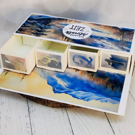 Hallo zusammen Ich habe heute für euch eine Idee für eine Karte mit Adventskalender für die Sonntage. Ihr braucht dazu: Mit der Stanzschablone Mini Streichholzschachtel vier Schachteln zusammen bauen und dann zusammen kleben. Diese werden Verkleidet mit einem Streifen Cardstock im Maß 5,7x 29,8 cm …